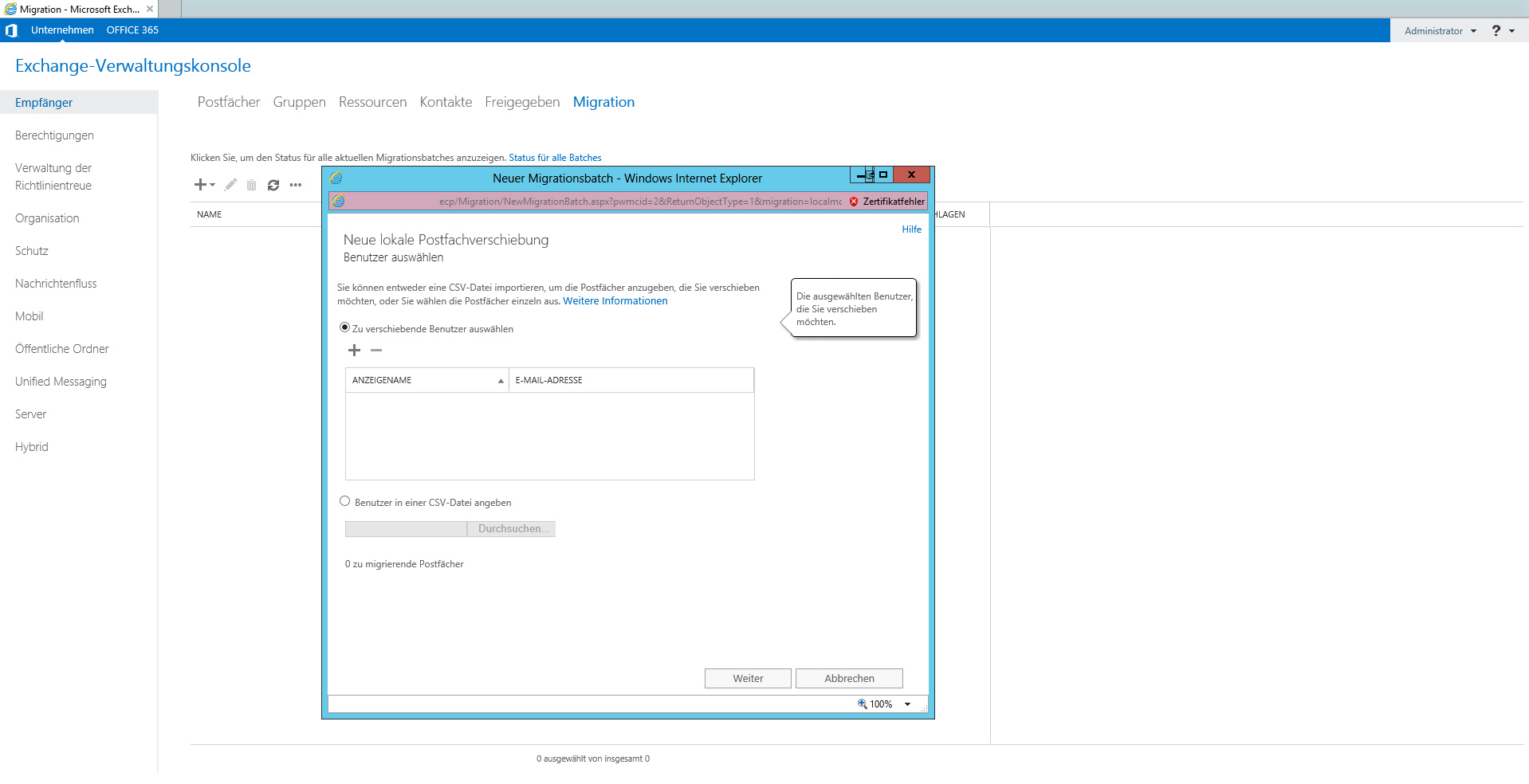 • Neue lokale Postfachverschiebung